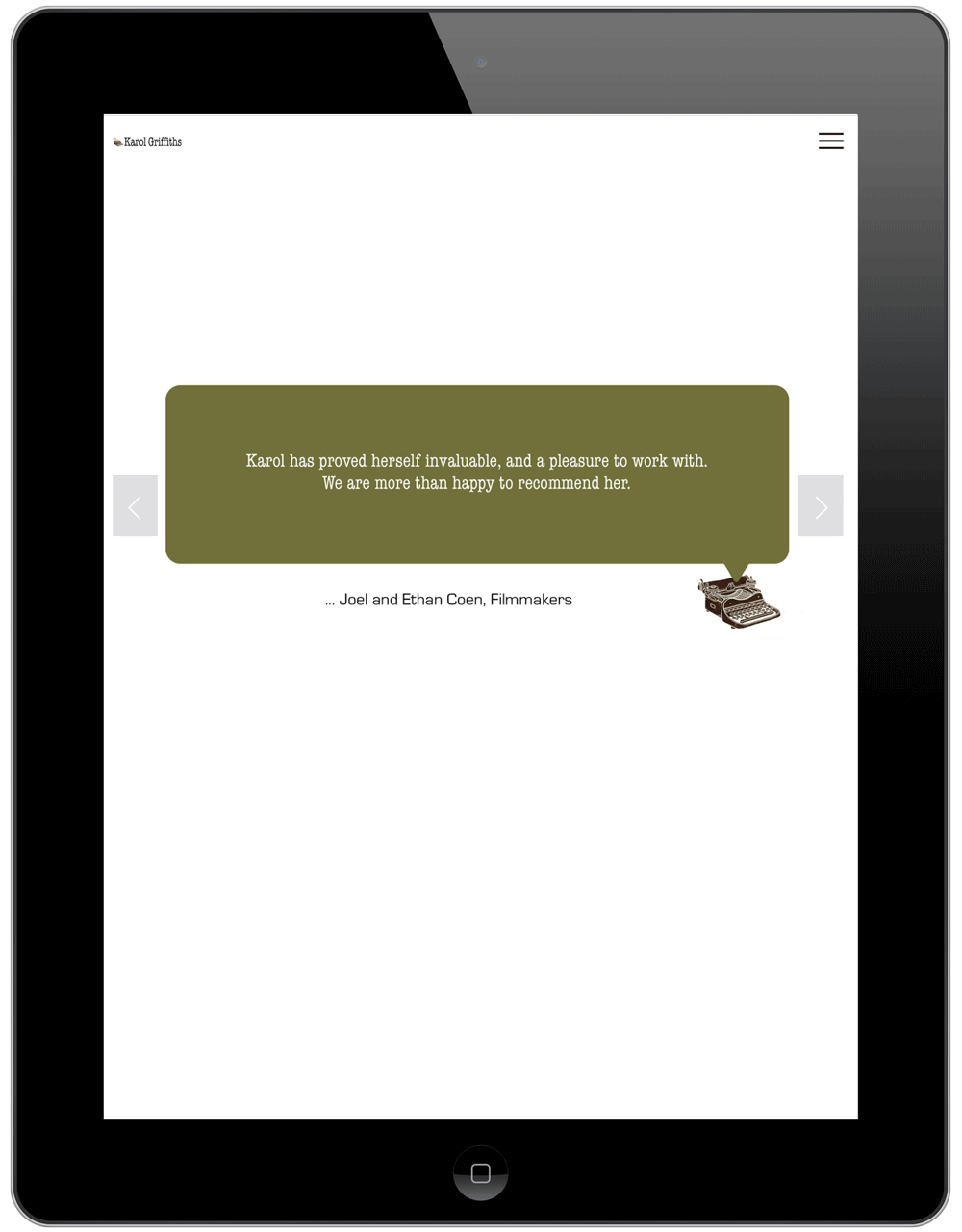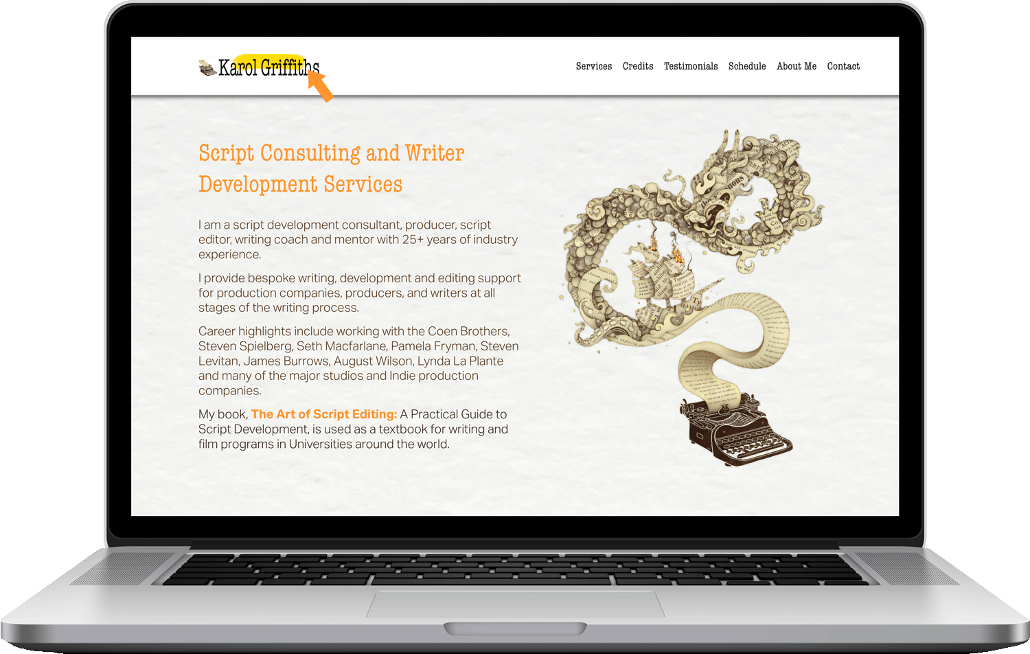 Karol is a script and development consultant, producer, and script editor. She works with production companies and writers, as well as doing one-to-one script consulting. Because her work revolves around writing, we created unique accents that enhance that theme and carried the theme throughout the website.