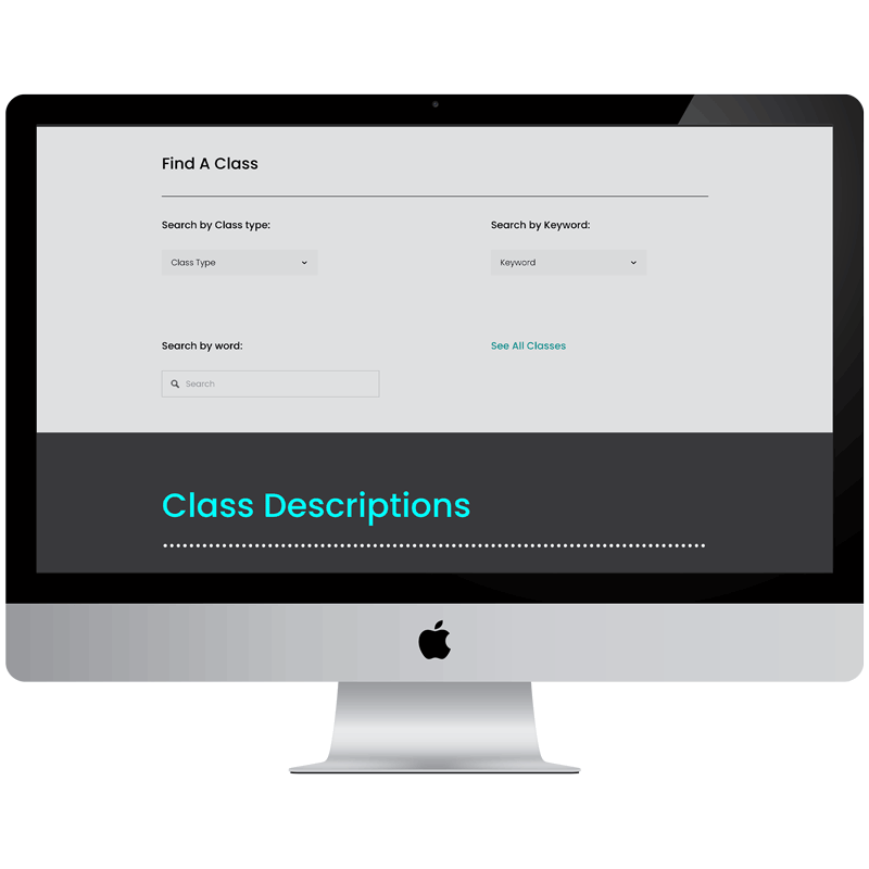 To make it easy to find the right class we created a dropdown search for Class Type and Keyword, a site-wide search, and an option to see all classes at once if desired. The Class Descriptions give simple explanations to help narrow options down.