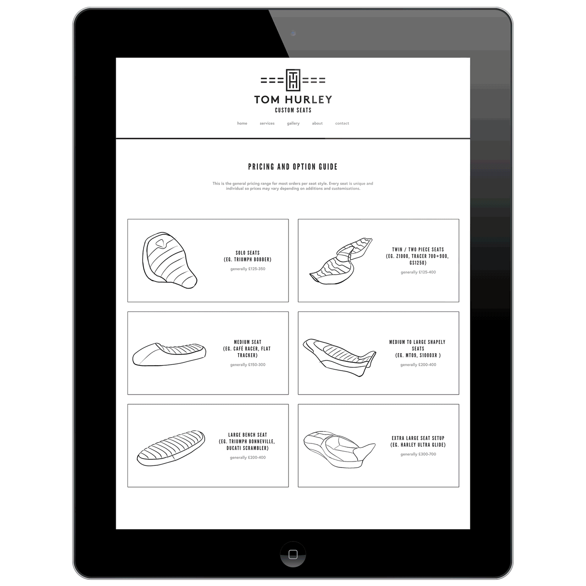 Tom makes incredible custom motorcycle seats. He previously had a Squarespace 7.0 site but wanted to upgrade and also wanted to streamline his business as he was feeling overwhelmed with his intake process. We discussed how we could make his website do more work for him thus allowing him more time to do what he loves, which is creating his art.